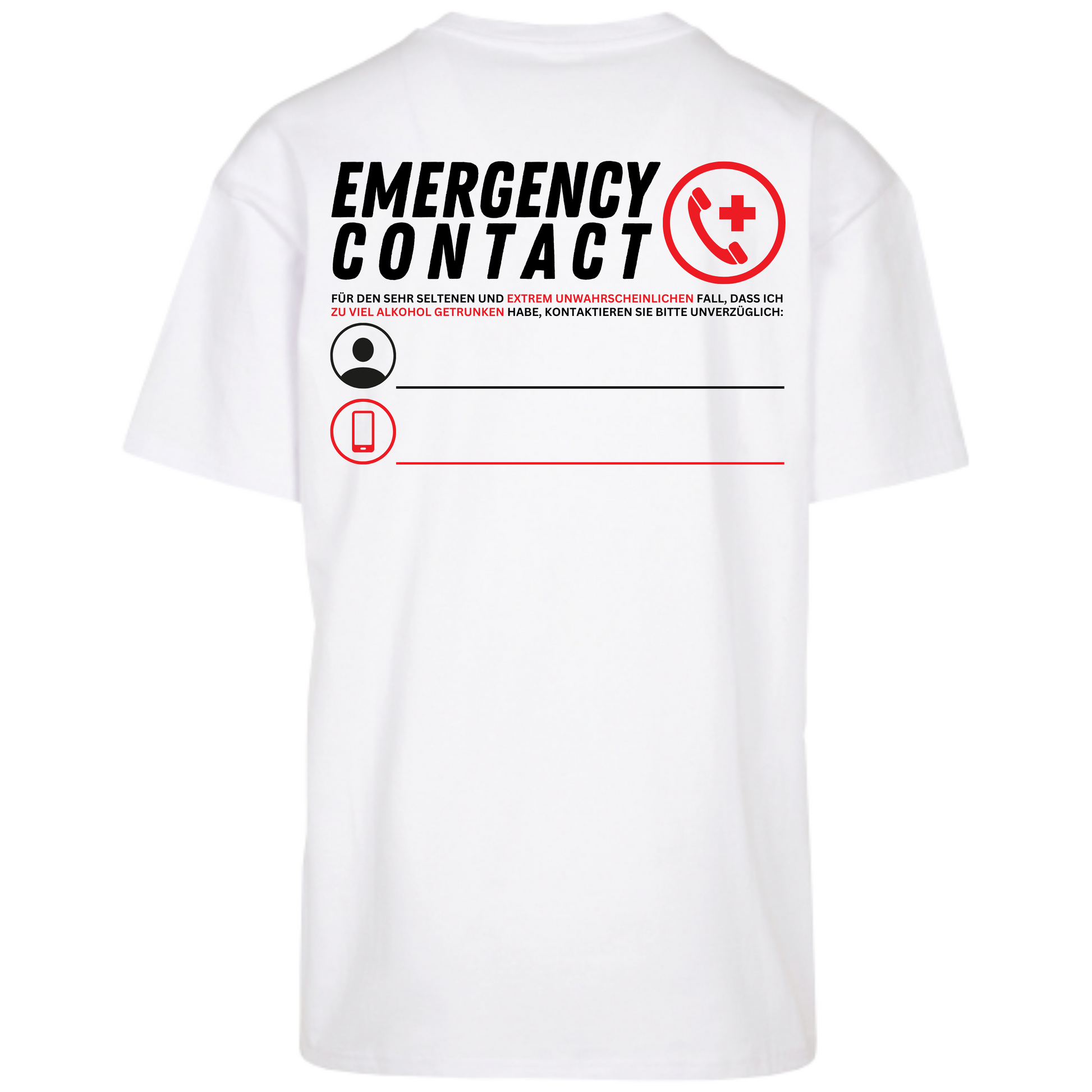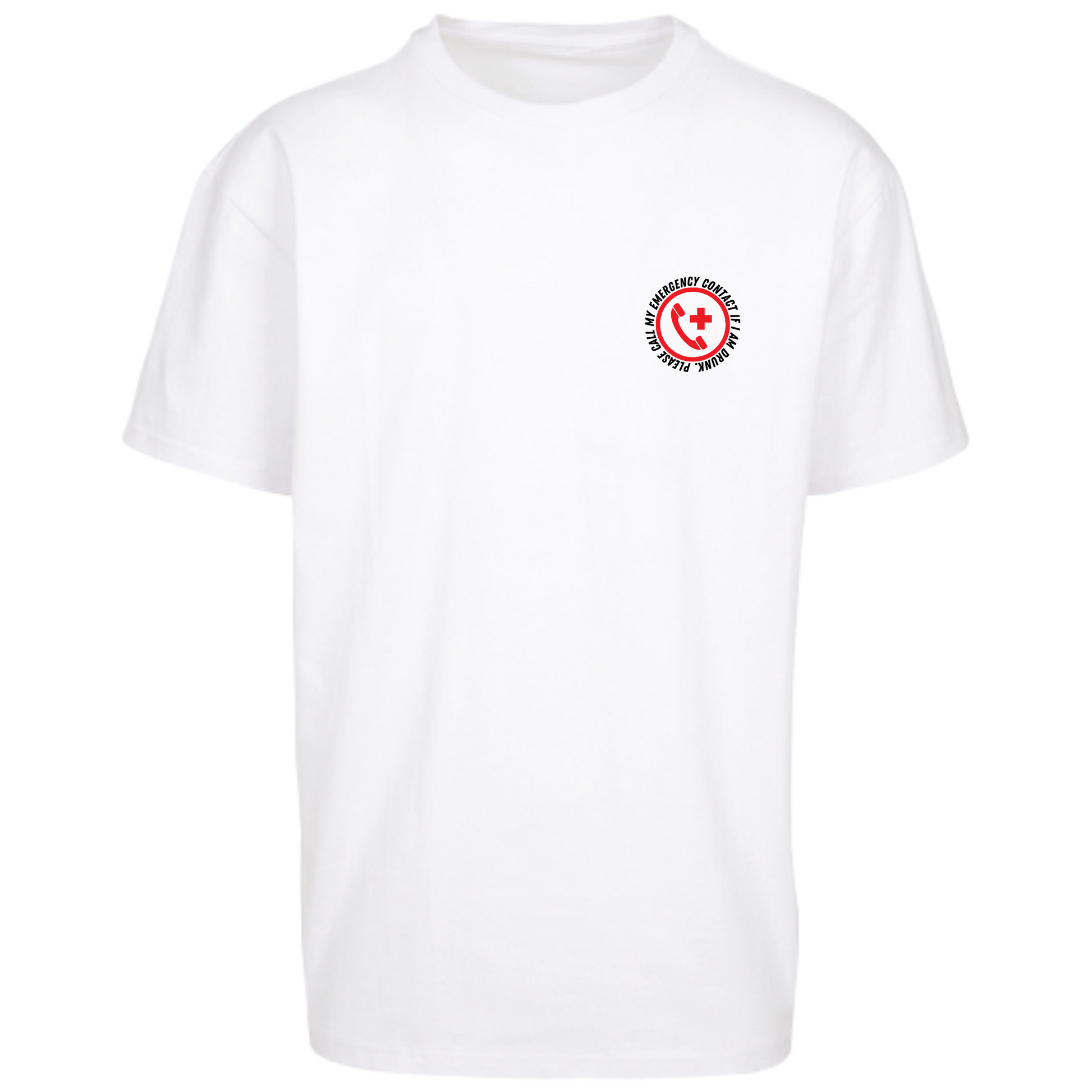 Emergency Kontakt Heavy Oversized Sauf T-Shirt mit Backprint zum Unterschreiben