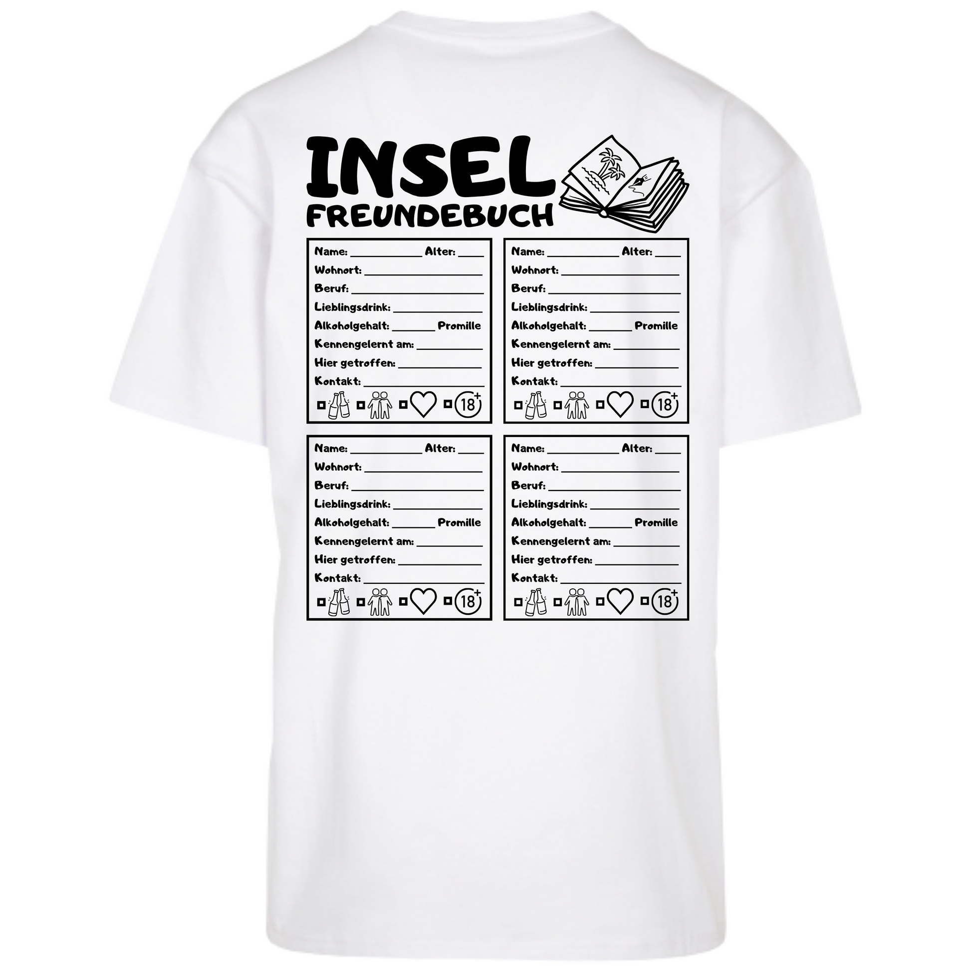 Insel Freundebuch Heavy Oversized Malle T-Shirt mit Backprint zum Unterschreiben